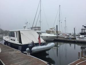 In the morning the fog was so thick we actually contemplated waiting a bit to leave, hoping it would burn off. However, we had to pick up the rental car in Wickford by noon, (Enterprise closes early on Saturdays and is not open on Sundays) and we had to first get fuel. Mark had found a location with great pricing in Galilee, but that required us going past Point Judith first, then back tracking up the Narragansett to get to Wickford. Additionally, the wind was going to start building throughout the day so we needed to get going.