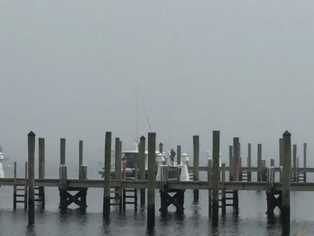 In the morning the fog was so thick we actually contemplated waiting a bit to leave, hoping it would burn off. However, we had to pick up the rental car in Wickford by noon, (Enterprise closes early on Saturdays and is not open on Sundays) and we had to first get fuel. Mark had found a location with great pricing in Galilee, but that required us going past Point Judith first, then back tracking up the Narragansett to get to Wickford. Additionally, the wind was going to start building throughout the day so we needed to get going.