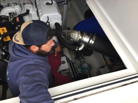 Denise hunkered down with boat chores (window washing) and getting all the writings ready to post to the blog (now that we had a somewhat reliable internet connection). Meanwhile, Mark spent the morning first on a conference call with a client and then he successfully replaced the generator impeller and got it running again. After lunch he did some adjustments to the davit system for the dinghy so as to minimize the now deflating tube that has been damaged.