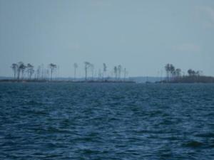 We headed out into the Great Wicomico River inlet where the wind was blowing and there were 1’ waves coming out of the northeast. Fortunately, we only had to go about a mile before turning up the channel towards Towles Creek and then the wind would be behind us. We could see the waves from the Bay crashing on the shallows outside the inlet, and we could not believe we saw a sailboat leave the inlet and head out in such conditions. Some people are just seaworthy enough for any kind of weather!