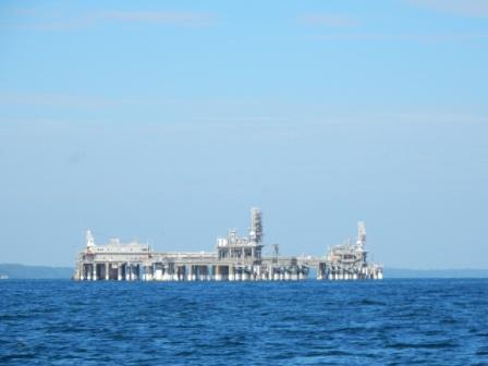 We turned south and headed through a very narrow breakwater that was only 75’ wide and had waves crashing against both sides. Mark did an awesome job of piloting Island Office through the narrows and into the bay that formed a great shelter from the wind.