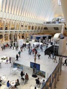 After a quick bite to eat we walked back towards the WTC and Oculus, seeking out a public restroom. The main lobby area was all set up for the President’s Cup – the golf tournament taking place right across the Hudson River. The displays included everything from PGA golf attire to purchase, to a bar sponsored by Michelob Ultra. They were broadcasting the ceremonies from the golf tournament on a big screen and many people were looking on from all around. We found our restrooms and left as soon as possible to get on with our day.