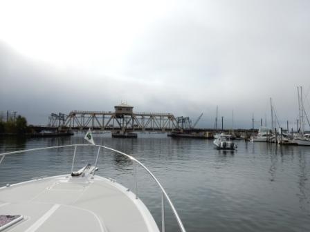 Once Denise returned we saw the fog had lifted a bit in the harbor and decided to head out. Our goal was to get to Port Washington on Long Island and we needed most of the day to get there. The fog had cleared a bit in the inner harbor, but we had to wait on the railroad swing bridge before we could get to the outer harbor. But, we were not alone in the wait as a huge yacht “Rena” was behind us and her tender was in front of us. They would eventually get back together in the outer harbor where the tender would be put back on the mother-ship before heading out into Long Island Sound.
