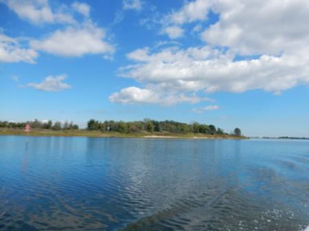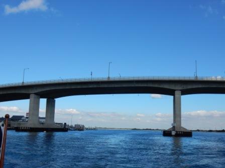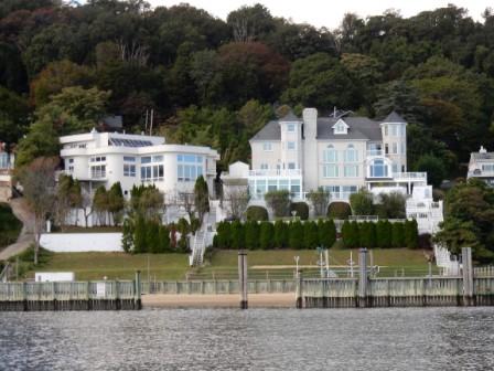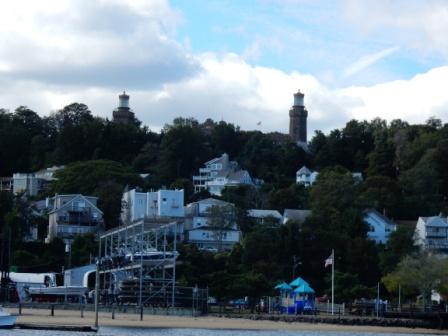 We took the channel south to Highlands through the Shrewsbury River going under the Highlands Route 36 bridge. From here we could see the Twin Lights State Park on the hill, bypassing numerous houses on both sides of the water.