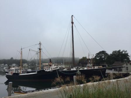 The night air had been calm and warm so naturally we woke up to thick fog everywhere. Hoping it would burn off a little we waited to leave Mystic and Denise went for a run. This time she took a path that did take her out to the Mystic Seaport Village Museum and captured a few more pictures along the way.
