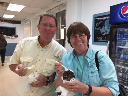 That evening the Woodworth’s drove us to Restaurant Diomede located in the nearby town of Little Silver. The restaurant has a fresh fish market right next door, and we had a delicious meal. We enjoyed talking more about our families and of course more about our boating adventures. From there we had to feed Clark’s sweet tooth and went to Hoffman’s for an ice cream cone; of course we had to participate.