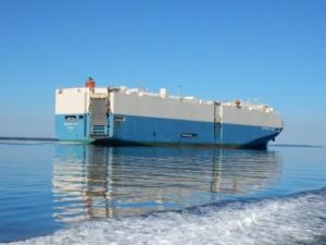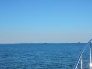 After exiting the C&D Canal and starting our way south on the Chesapeake, we encountered first a Coast Guard vessel, then two car-carrying ships that are so huge you can see them for miles. They look like buildings on the water.
