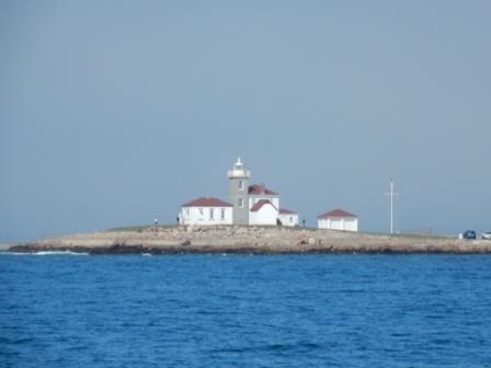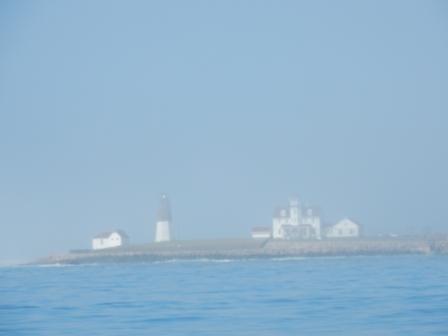 Throughout the morning we encountered some fog intermittently, but nothing too bad. In the distance we passed by Block Island and rounded Watch Hill point and its lighthouse.