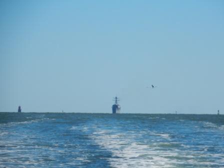 We followed the ICW south for a short distance before coming to the Pamlico Sound, which was calm and which we uneventfully crossed in 15 minutes. From here the ICW enters Goose Creek, a small and narrow waterway that is lined with some houses, but mostly trees and marshland. We cruised past the Hobucken Coast Guard station and the Hobucken Bridge.