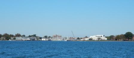 Not long afterwards the ICW enters the Bay River which then dumps into the Neuse River and from there the course turns a bit west for a short duration. We however continued to cruise up the Neuse River passing the turn of the ICW which heads south; we continued north for another 20 miles to the town of New Bern. The Neuse River is very wide and is mostly tree-lined, but there are many homes along the way. There is also Marine Corps Air Station Cherry Point that is on its southern shore, about half way up the river.