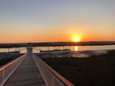 We chose this spot as our friends Vicki & Mack (McGahee) from the Down East Loop in 2019 live here. Last year they sold their boat (“Confetti”) and have now moved into a dirt home on Lady’s Island.  We had made previous plans to connect with them, and they graciously invited us to their home for dinner.  So Mack picked us up at the marina and drove us back to their home where we had a chance to share stories, including Mack’s adventure walking the Appalachian Trail in 2020.   After dinner we walked around their neighborhood and out to their community dock for a great view of the low country marshes in this area.  Before long the night was coming to a close and we had to leave. We said good bye and Mack drove us back to the marina and we called it a night.