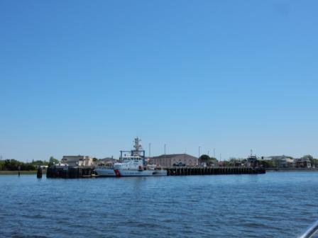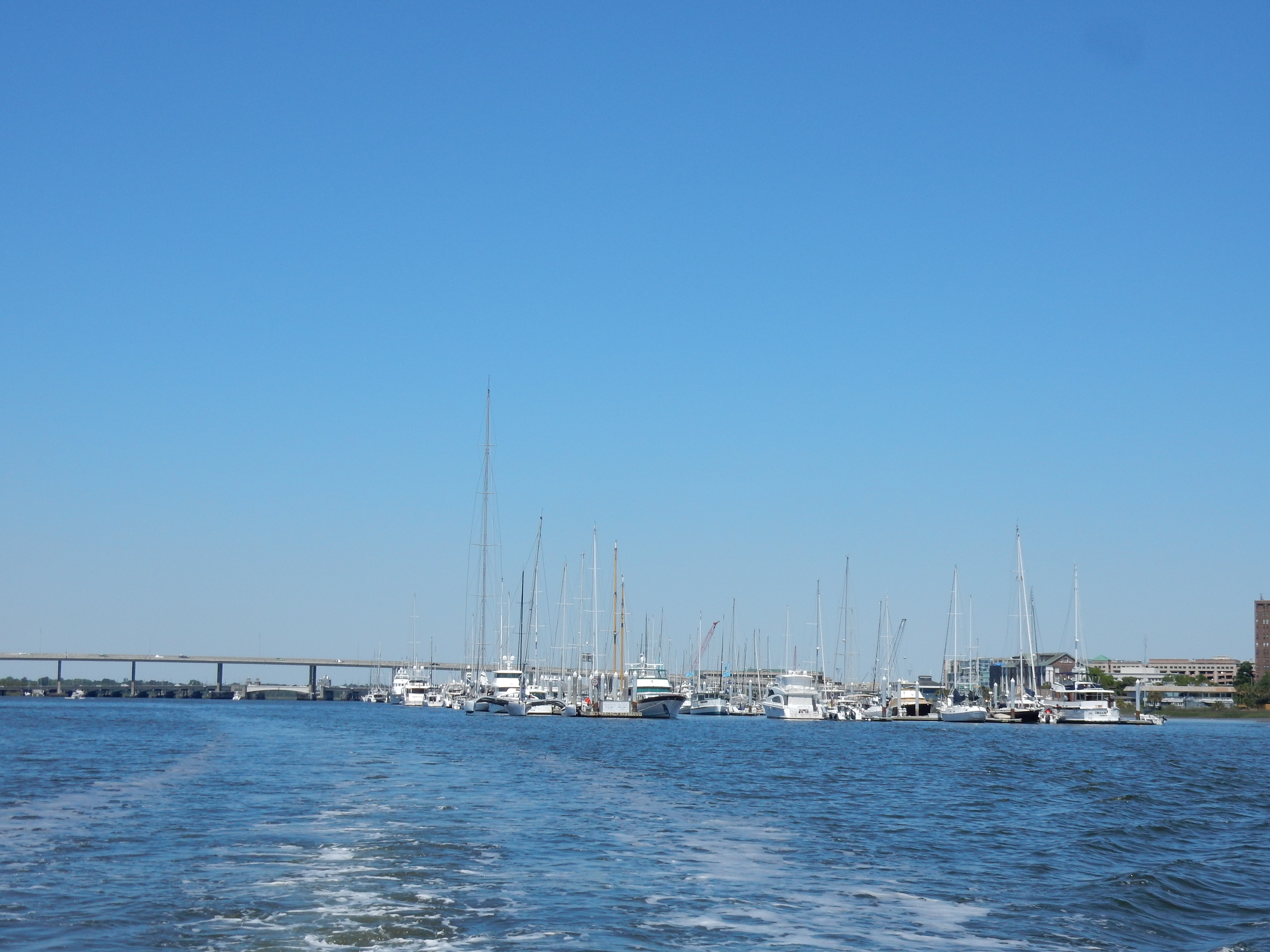 So we left the Bristol Marina right at noon and headed out into the Ashley River. We passed the City marina and the Coast Guard station, and eventually the downtown.
