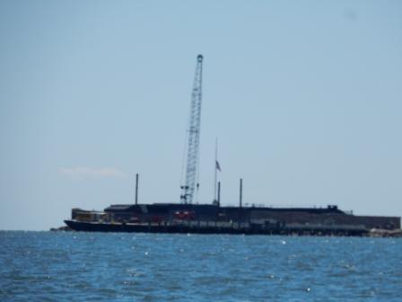 It was a beautiful, but cold day on the water and we got to see Ft. Sumter on the horizon with a dredging operation going on in Charleston Harbor blocking part of the view. We also passed a large ship that was just getting under way from an anchorage and the “Spirit of Charleston” tour boat.