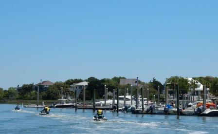 We re-entered the ICW near Sullivan’s Island and cruised slowly through the no-wake zone; another area where the waterway is bordered by homes with boats on their docks.