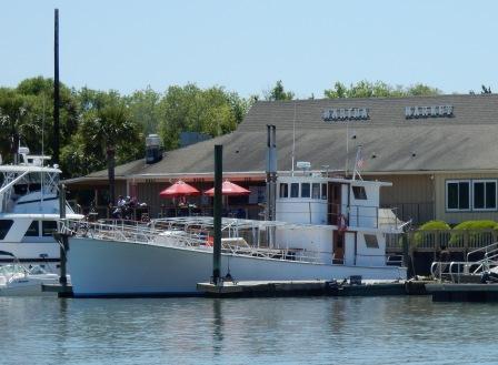 We use this as a landmark when heading north knowing we don’t have much further to go to Georgetown. Within 15 minutes the ICW takes a left turn into the Winyah Bay, and here we entered the channel to take us into Harborwalk Marina at Georgetown; our spot for the night and right on our predicted time of 4:00 pm.