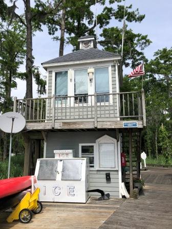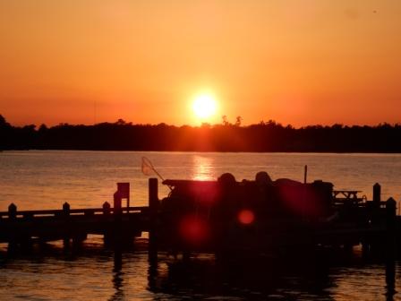 Our evening was spent hanging around the marina and talking with a few of the locals. We had a dinner of smoked pulled pork we brought from home (the last of it) from our freezer. After dinner we went for a walk around the marina grounds and noticed the water level in the creek was quite high. We are on a floating dock and don’t notice it as much when on the boat. But when we walked up to where the marina office and other buildings are, we could see the significant difference against the fixed docks. The docks and water were almost one, and our gangplank which normally we have to walk up, we now had to walk down. Come to find out Wednesday’s full moon is a “Supermoon” and we will have higher and lower high & low tides greater than normal.