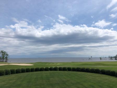 We woke up to cloudy skies and a temperature at 6:00 am of 64°; the warmest morning yet. Denise went for a run and actually wore a tank top for the first time since leaving on our trip. On her return, she encountered a man and his two dogs in the marina parking lot. After some small talk she discovered “Scott” lived two houses over from the marina, and it is his house that has the lighted decorative palm trees on his dock. She also learned he is an oral surgeon and moved here from Hampton three years ago, with his wife. He talked about the area and how much he loves his view of the York River and the bridge. When she returned back to the boat, Mark was already up eating breakfast and ready to take on the day.