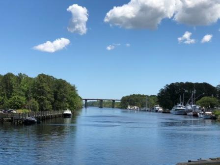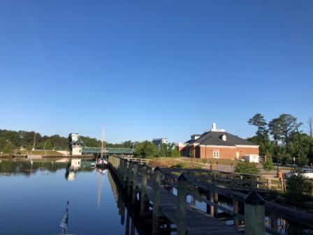 One of the interesting things we have not yet shared about this location, is its proximity to the US Coast Guard (USCG) Yorktown Training Center. In addition to watching the USCG boats go out of the creek each day, we get treated to a few of their routines. The first is at 7:55 am when they play a bugle tune over the campus that can be heard all around this area. Then at 8:00 am they play Reveille. In the evening near sunset, they play “Retreat”, then “Taps” at 10:00 pm; we figured out that one must be for “lights out” as it is officially used to signify “quiet hours”. We have also heard them doing gun fire exercises or target practice. All of this to keep us all safe, and to be there on the waterway when any of us need them. Some reviewers of this marina have made negative comments about these routines, but we consider these minor issues for a stay at this marina. Besides, we love our Coasties and will support them in any way we can.