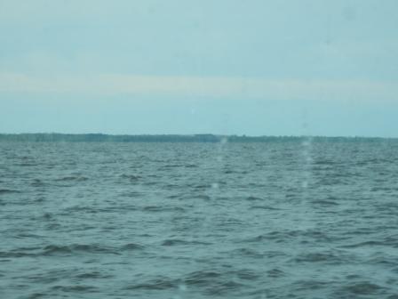 Once we left the Alligator River and headed onto the Sound we had to turn into the waves and wind. It was a bit choppy and the waves were splashing over the bow, but it was not too bad. Eventually we were able to turn to a more westerly direction and the wind and waves ended up behind us. This made it perfectly comfortable and Denise was able to relax more. There were almost no other boats on the water and the coastline on both sides of the Sound is mostly rural, with nice homes interspersed along the way. The only real hazard out here were the numerous crab pots that are so prevalent on the Sound. But Captain Mark did a good job of navigating around them all.