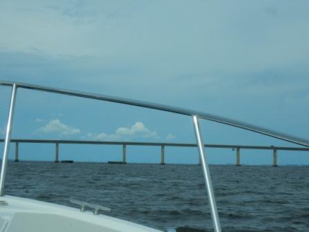 Eventually we came to the Albemarle Sound Bridge, the only roadway that cuts across the 50+-mile long Albemarle Sound. We could see it for miles, where first it looked like a structure on an island. But as we got closer the ends that connected it to land became more visible and it wasn’t long before we went under its center arch.