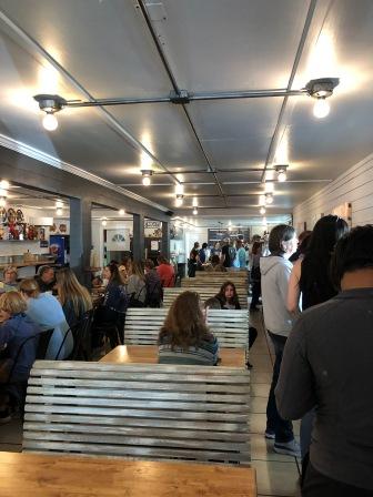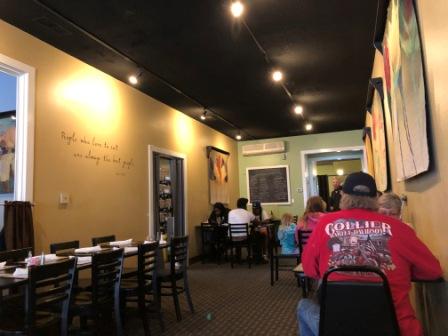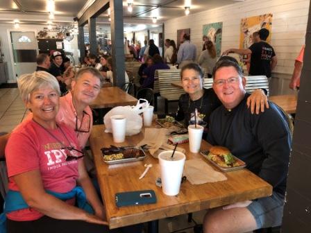 We arrived at 11:30 just as Ann and Steve pulled up in their bicycles. We got in line, which was already out the door, but it seemed to move quickly. While in line we asked the guy in front of us for what to order. “Everett”, was a regular and gave us some suggestions. We ended up conversing about where we were from, and where he was from. Come to find out he had lived in FL and flew planes as a crop duster for a living. But he has his own plane and had just come back from flying a special person from Florida to Virginia; that person was General Michael Flynn. Needless to say we had lots to talk about. He was very kind and had a very pleasant demeanor; a real southern gentleman. Without realizing it we had been waiting in line for nearly 30 minutes. And it was worth the wait as it was delicious.