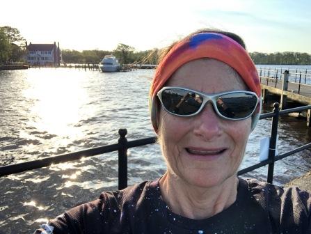 Mark decided to take a nap, and it was while he was napping that another boat came in and Denise went to assist with the tie-up. She introduced herself to Ann and Steve (“Hallelujah”), who are from Colorado and are doing the Great Loop. They started their Loop adventure from Ft. Myers. But today they came from the town of Columbia as they are also doing the Albemarle Loop, which they started in Manteo near the Outer Banks. Denise shared some information with them about where to go to check in, and we agreed to get caught up later.