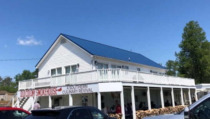 So at 11:00 we set out from the marina to meet our new friends at the Old Colony Smokehouse. Along the way we passed by some small business, a small residential area, and a large farm before coming to a small boat marina where the restaurant was located.