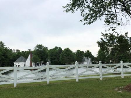 With the Plantation map in hand she set out in the golf cart. Soon she realized that the map had only the names of the different housing sections of the Plantation, and no street names. But, with her keen sense of direction she was able to find her way all the way through to “Plantation Estates” where the road was for the construction entrance. However, once arriving she realized there was no way this was going to work. There was a gate with a chain and lock, and the road was gravel. There was no way to take the cart down it, even if there was no gate. Denise contemplated leaving the cart and walking it, but the threatening rain and the fact that milk may get warm made her nix the whole idea. She drove around a bit to see the new “estate” houses under construction, and then returned to boat. Right after she told Mark about her adventure, he ran into Raleigh (Asst. Dockmaster) and told him about us wanting to get some milk. It just so happens his wife was headed to DG and agreed to pick up a half-gallon for us. Here are some pictures from her adventures around the AP: