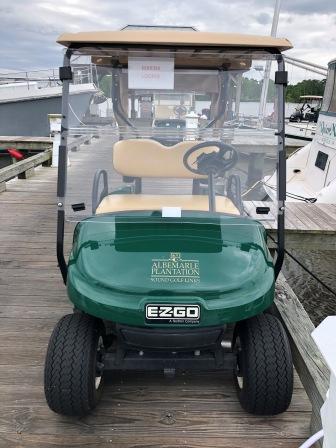 Once we settled the boat, JE (Dockmaster) showed us the golf cart we get to use while here. He then gave us a short tour of where things were located (restrooms, laundry, ice machine, barbeque grill, etc.). He also gave us a welcome packet that included the 2021 Albemarle Loop Brochure (we had an outdated one), a map of the area, menu for the dockside restaurant, discount card, disposable wet wipes, a travel kit, and other brochures about things to do in the area. We truly felt welcome! We then took the cart and drove around to some of the key places in the Plantation so we could get our bearings.