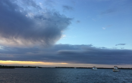 Tuesday (2/16), Marathon, FL – In the morning it was cloudy and very breezy. We watched a storm blow in off the Gulf of Mexico towards the yacht club and really kick up some wind.