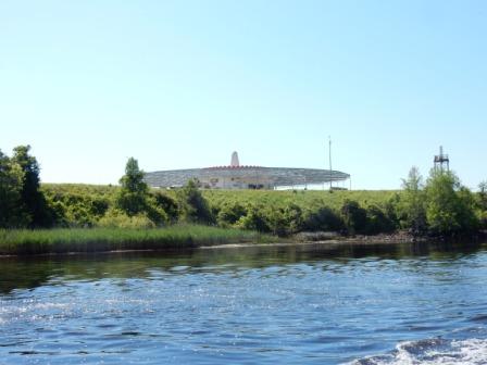 Not long afterwards the ICW opens up into the Bay River and the areas on both sides of the ICW are more populated, although the houses are still far apart from one another. We always know we are close the Neuse River when we spot on such house on the northwestern shore that sticks out from all the others.