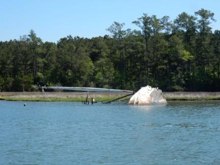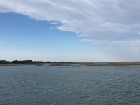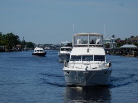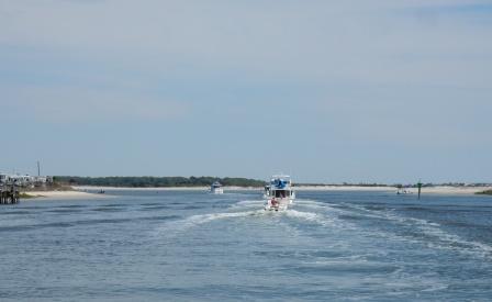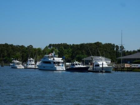 We made our way through the Pungo River and eventually we came to the Pamlico River. The 5-mile crossing was uneventful and we were soon in the protected waters of Goose Creek. Here we encountered lots of boats and it was slow going. We were passed by several sport fishing boats, and we overtook a few other boaters who were enjoying this beautiful Saturday on the water. Eventually, we cruised passed the USCG Station Hobucken and the fishing boats at RE Mayo Seafood stop; a known landmark for all ICW cruisers.