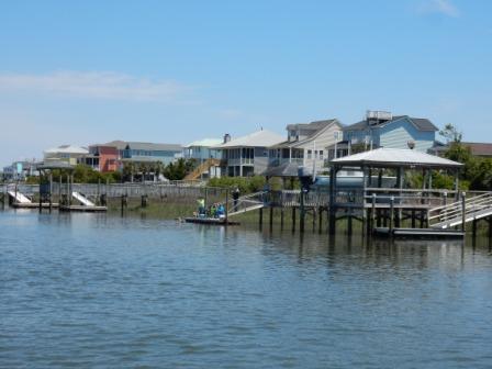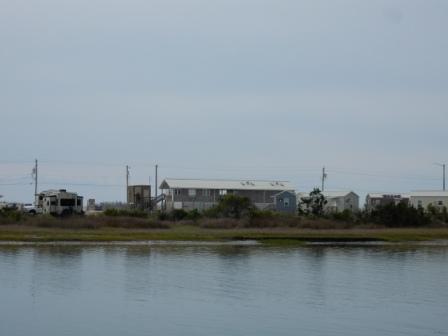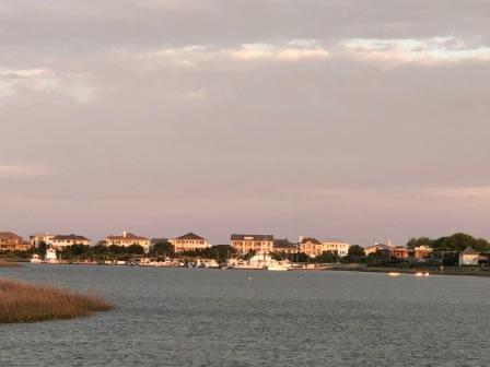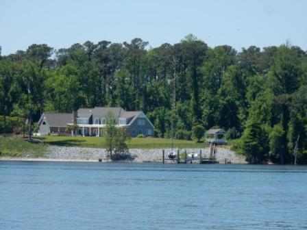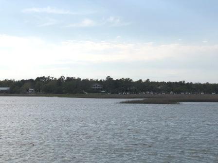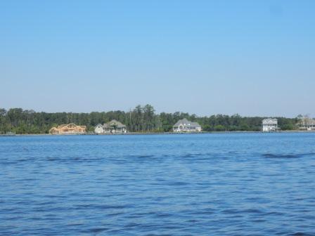 We entered the Neuse River and headed west, then southwest on a diagonal crossing to Adams Creek. It was a little breezy and there were lots of sailboats enjoying the day on this large body of water. We cruised the 20 miles in relative comfort with the wind and waves behind us. At 11:00 am we entered Adams Creek and headed south. Here it starts out with a few homes along the shores, but eventually it becomes quite populated with many more houses and boat docks It was slow-going through this area now known as Core Creek, until the ICW widens and it becomes part of the Newport River.