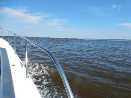We plotted a direct straight-line course towards the Alligator River on the southern shore, and again here the crossing was not long (10 miles). It was a bit rougher than the Currituck, but the wind and waves were from behind so it was much more comfortable than if it was crashing over the bow; we were glad we were not trying to go north.