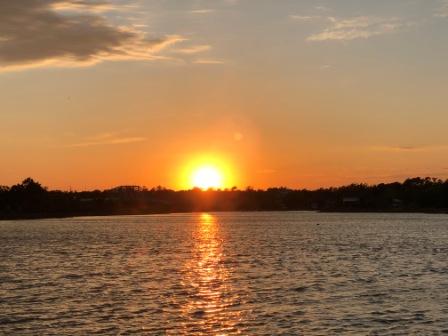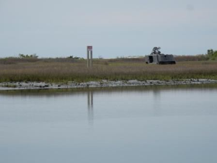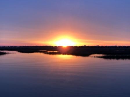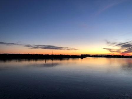 Also in the afternoon, Denise contacted the Marine Corps Base at Camp Lejeune to inquire about live-fire exercises for tomorrow. Some of you may know from our previous blogs, that if there are live-fire exercises, the ICW is closed through the base for extended periods of time. They also put up restricted areas off-shore, making it very undesirable for an off-shore passage down the NC coast in this area. If there were going to be exercises we would have to time our departure to arrive at the Onslow Beach Bridge for the 1:00 pm opening; the only one that day. This would significantly impact our ability to get to our intended destination of Wrightsville Beach tomorrow. Luckily, there were no exercises planned, so now all we had to do was time the bridge opening for the half-hour openings. We considered going offshore, but the wind out of the east and rain possibilities made us stick to the ICW for the day.