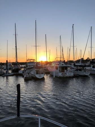 We spent the rest of the evening relaxing on the boat and watching the HBO movie “Tenet” – very intriguing and a definite mind-bender, before calling it a day. But we were treated to a very nice sunset.